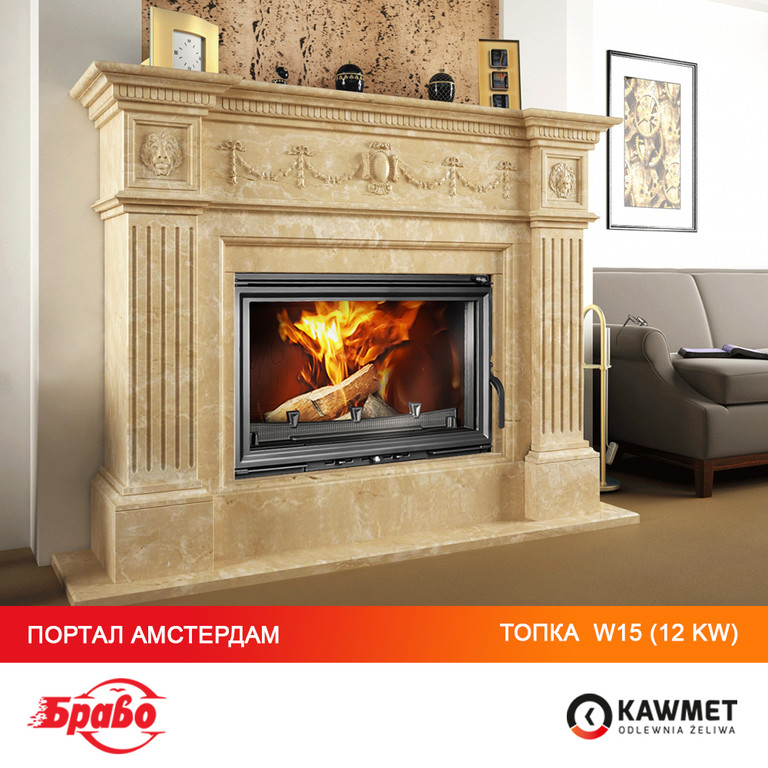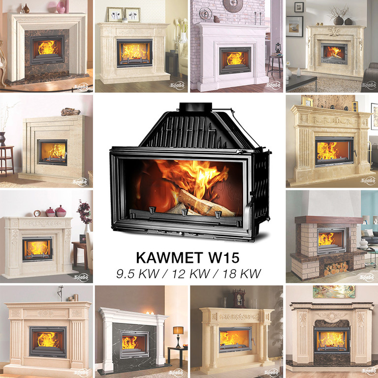 В портфолио представляется фото в интерьере - сочетание каминной топки KAWMET W15 12kW с различными мраморными порталами БРАВО. Все цены на порталы указаны на сайте для стандартных размеров, указанных в характеристиках. При создании портала для каминной топки под индивидуальные размеры цена меняется. Для заказа такого портала вам следует пообщаться с менеджером и предоставить ему все размеры.